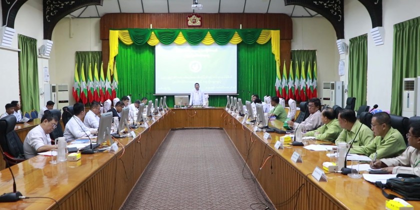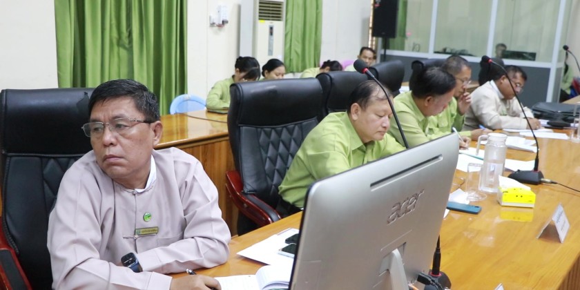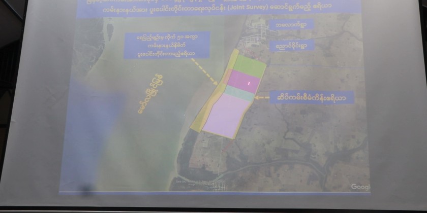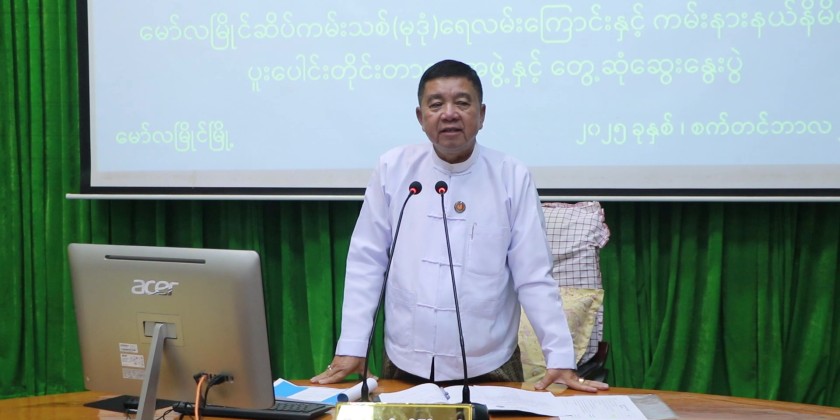 Mon State Chief Minister U Aung Kyi Thein attended a consultative meeting to clarify the plan for conducting a joint survey of the waterway and coastal boundary for the construction of an International Coastal Port near Mudon Township.