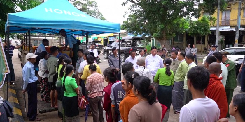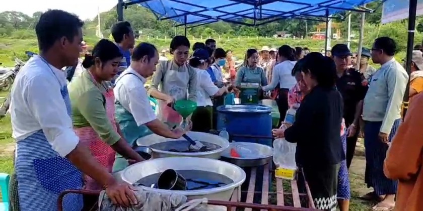 Under the supervision of Magway Region Government, the General Administration Department, the Consumers Affairs Department and the City Development Committee together with Myanmar Edible oil merchants and entrepreneurs association and Rice marchents association sold one viss of palm oil with the price of 4500 kyats for one viss to the 680 households in Ywar Thit Pwal Kyo Ward, 1,180 households in Myo Haung Ward and 1,100 households in Aung Myitta Ward; totalling 2,960 households.