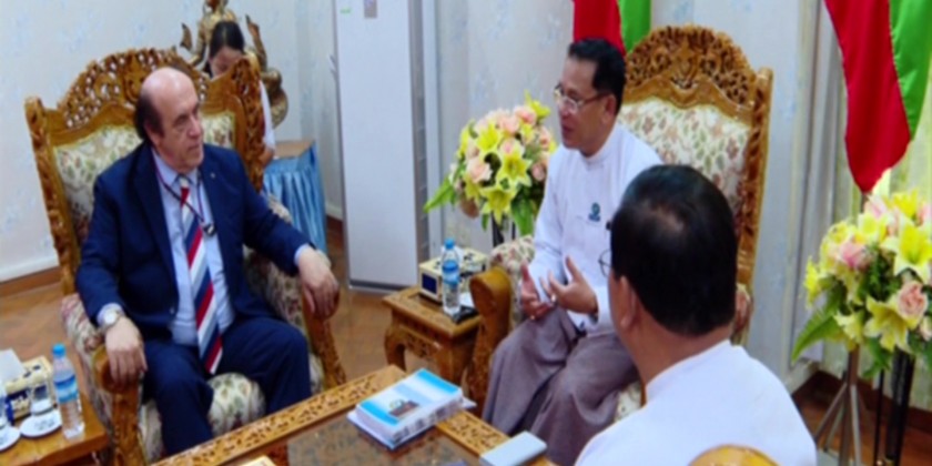 Union Minister for Information U Maung Maung Ohn received former president of the Foreign Correspondent Club of Japan (FCCJ) Mr. KhaldonAzhari in Nay Pyi Taw on Thursday.
