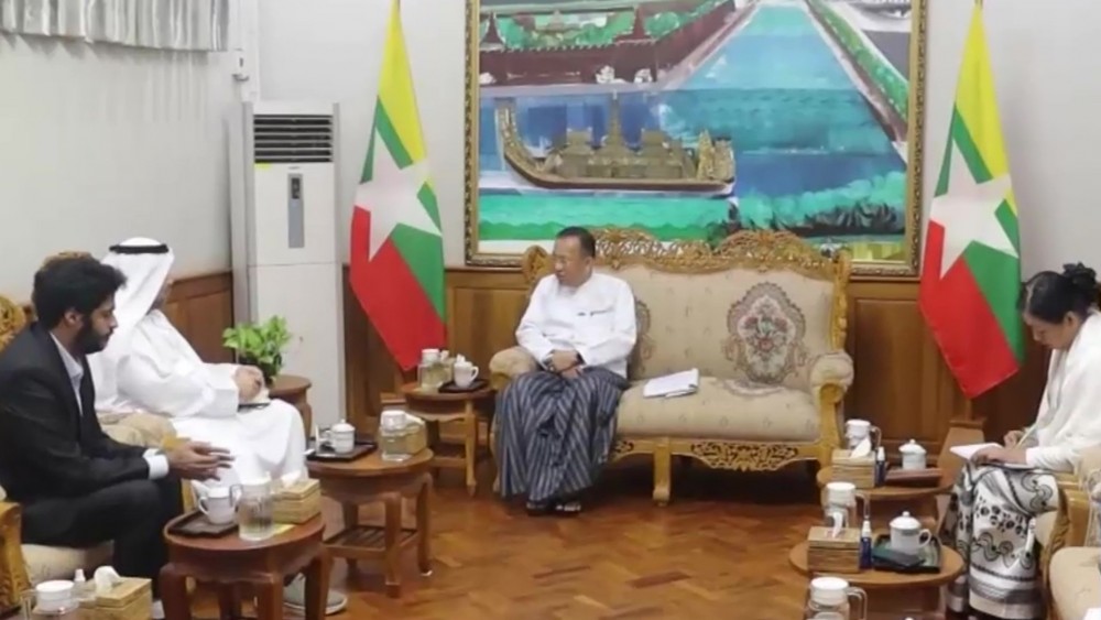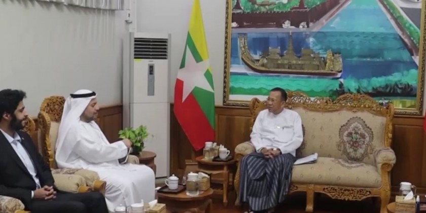 Union Minister for Investment and Foreign Economic Relations Dr. Kan Zaw received Ambassador of the United Arab Emirates (UAE) to Myanmar Mr. Mutaz Abdullah Abduljaleel Mohamed Al Faheem in Nay Pyi Taw. This meeting discussed enhancing the investment and economic cooperation between Myanmar and the United Arab Emirates and matters related to regional and international cooperation.