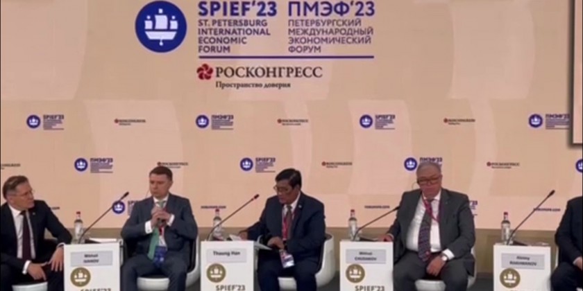 Union Minister for Electric Power U Thaung Han attended the third-day session of the St. Petersburg International Economic Forum 2023 in the Russian Federation on June 16th.