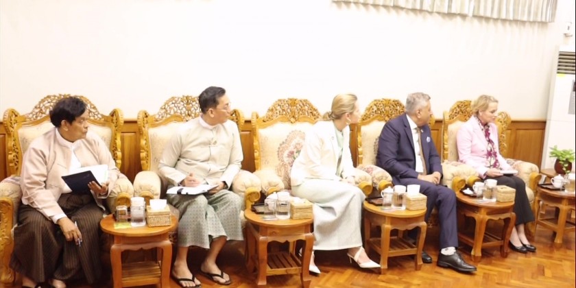Union Minister for Investment and Foreign Economic Relations Dr. Kan Zaw received Assistant Secretary General of the UN, Deputy Executive Director for UNOPS Ms. Kirstine Damkjaer and representatives at the Ministry in Nay Pyi Taw on Thursday.