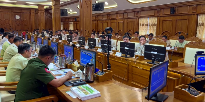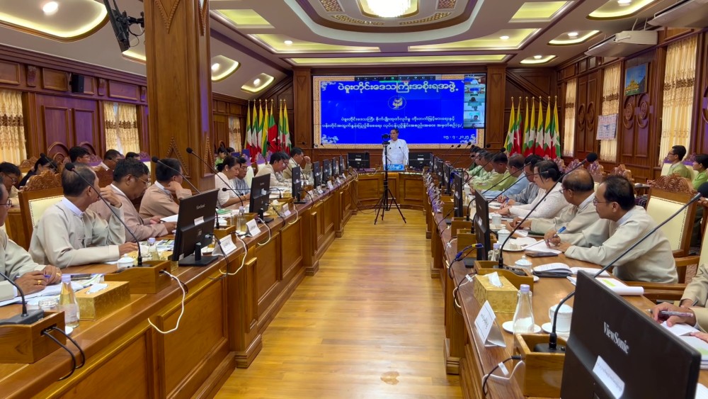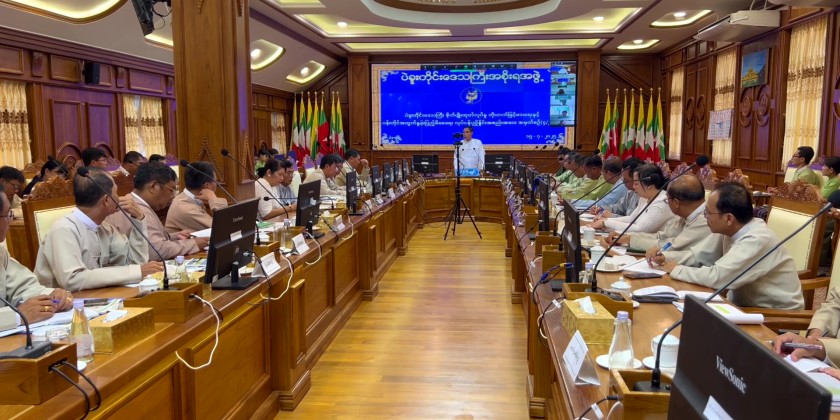 He also stressed the need to continue public awareness efforts vigorously. Attending members of the regional agricultural supervisory team and chairs of the district administration bodies also presented sector-specific clarifications and suggestions. The Chief Minister, U Myo Swe Win, provided detailed guidance and instructions based on the specific needs of each township.