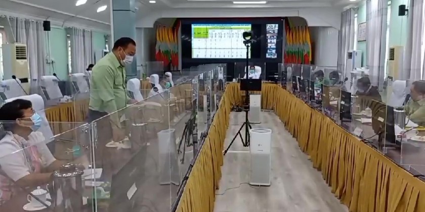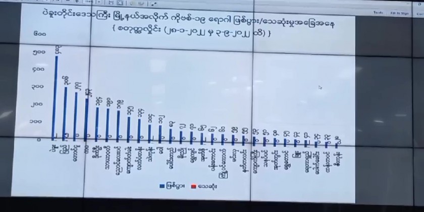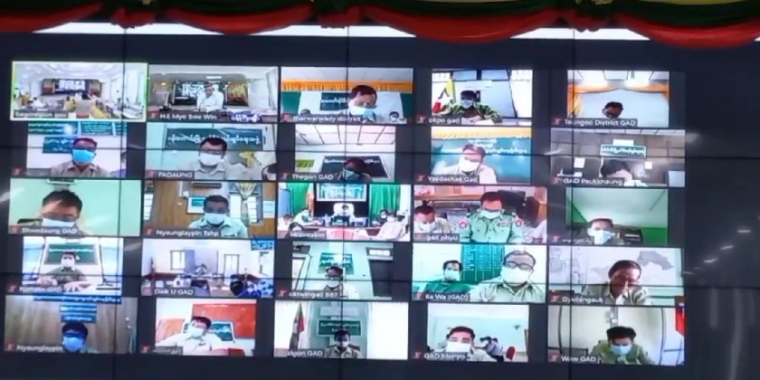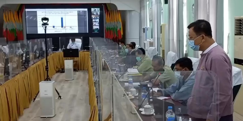 Next, the region head officer of the public health department and chairmen of district administrative bodies clarified the detecting positive cases, giving treatment and giving vaccines and the COVID-19 preventive measures and compiled statistics as per the township with power point presentation.