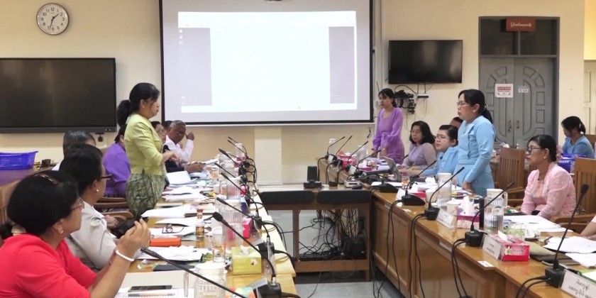 At the meeting, Union Minister Professor Dr. Thet Khaing Win made an opening speech and urged to discuss for the holding of graduation ceremonies for those who have completed internships at the Universities of Medicines and Dental Medicines as well as those who have successfully passed the final year exam and released the list of graduates from post-graduate courses at the Medicines related Universities.