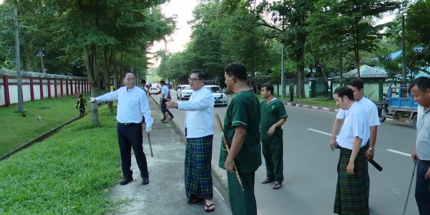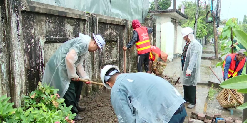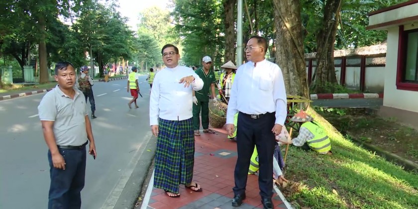 Then, the Chief Minister accompanied by State Minister for Natural Resources oversaw the collective cleaning tasks and land preparations to plant ornamental plants along Union Road carried out by departmental officials and staff from City Development Committee and Kachin State Clean & Green Team members. Then, they inspected the arrival of five Tank Carriers purchased by state government fund and preparations to construct new City Hall in Myitkyina Township.