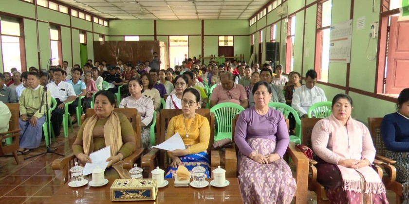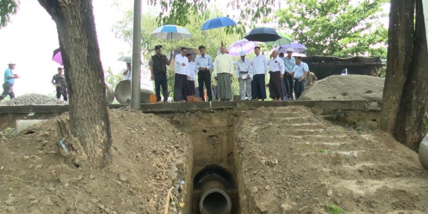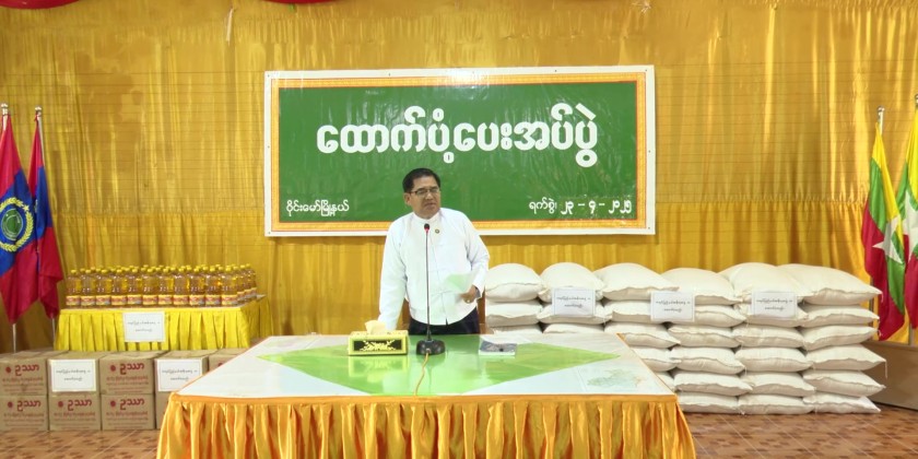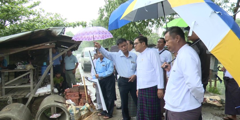 At the hall of the Waingmaw Township General Administrative Department, the Chief Minister met with the displaced familiess from the villages in the township due to the terrorist acts and gave words of encouragement. Then, the Chief Minister provided rice, cooking oil, eggs, Tarpaulin sheets and 2 million kyats cash assistance. Similarly, the Chief Minister made survey inspection for construction of Yay Kyi Chaung sluice gate during 2025-2026 fiscal year.