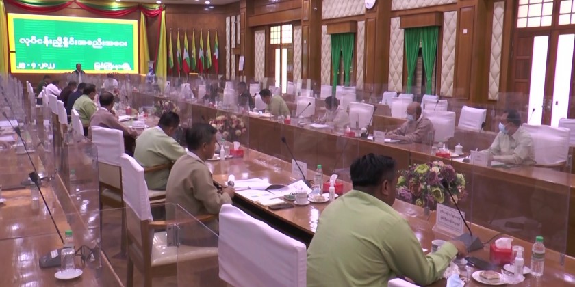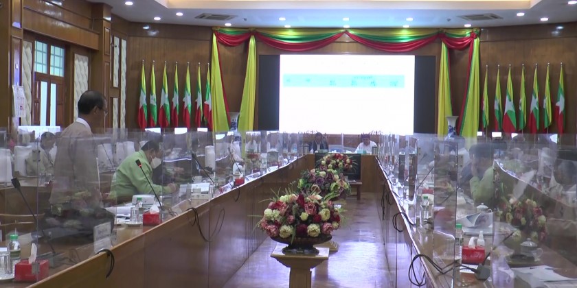 The work coordination meeting on the development of agricultural products under the collaboration between the Ministry of Agriculture, Livestock and Irrigation and the Kachin State Government was held at the Malikha Hall of the state government office in the evening on 29th April with the attendance of Union Minister U Tin Htut Oo, Kachin State Chief Minister U Khet Htein Nan, state government ministers and responsible officials.