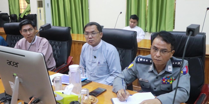 During the meeting, Chairman of the Scrutiny Committee for Mon State Certificates of Honor and Medals Minister for Security and Border Affairs discussed the necessary matters.
