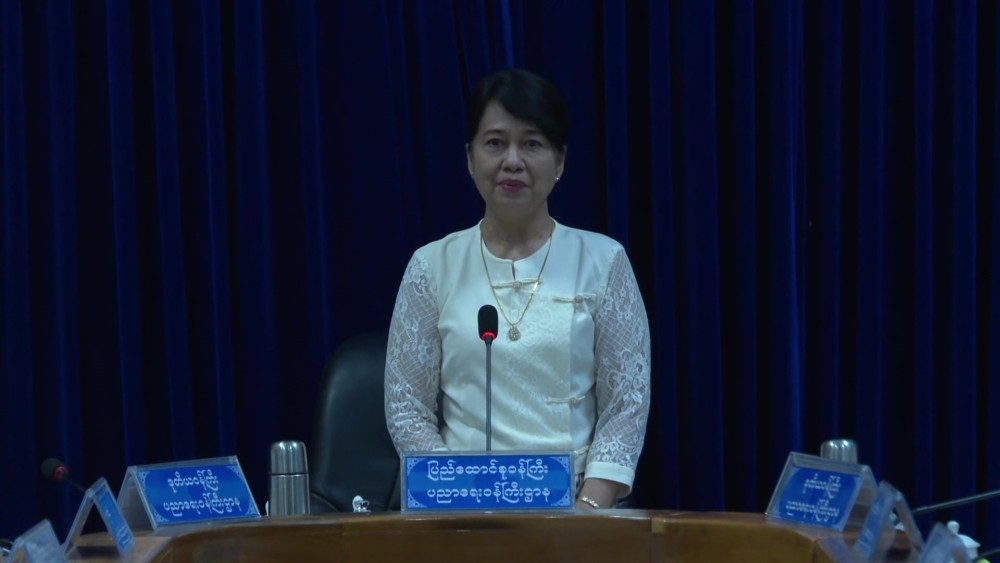 Union Minister for Education Dr. Chaw Chaw Sein delivered the opening remarks. The Union Minister first noted that the success of the Mandalay University Centenary Celebration would require the cooperation of the Ministry of Education, the Mandalay Region Government, universities, education degree colleges, and the active participation of the new generation of students. She emphasized the crucial role of local communities and alumni while also stressing the importance of valuing and giving space for the contributions of the youth.