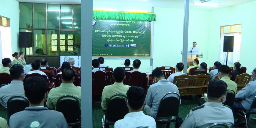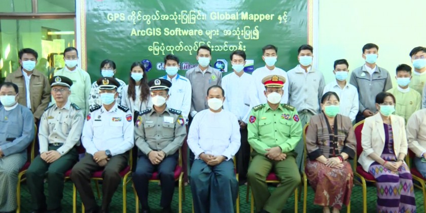 Next, the director U Kyaw Zayya from the region department of forest clarified regarding the opening the training course, the chief minister and officials posed for documentary with the trainees and the opening ceremony was concluded. GPS handling and map making training by using the Global Mapper and ArcGIS Software will take place for 7 weeks and be attended 15 trainees.