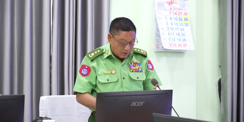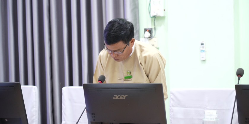 Subsequently, the Region Agriculture Director and the Region Department of Agriculture Land Management and Statistics Director presented clear reports according to their respective sectors. The Director of the Irrigation and Water Utilization Management Department reported that due to the heavy rainfall caused by the strong typhoon, flooding occurred in two low-lying wards of Natmauk Township. He also clearly presented the conditions of dams, reservoirs, canals, and water intake areas.