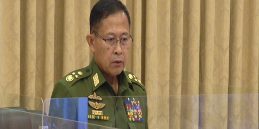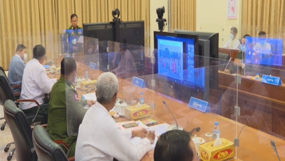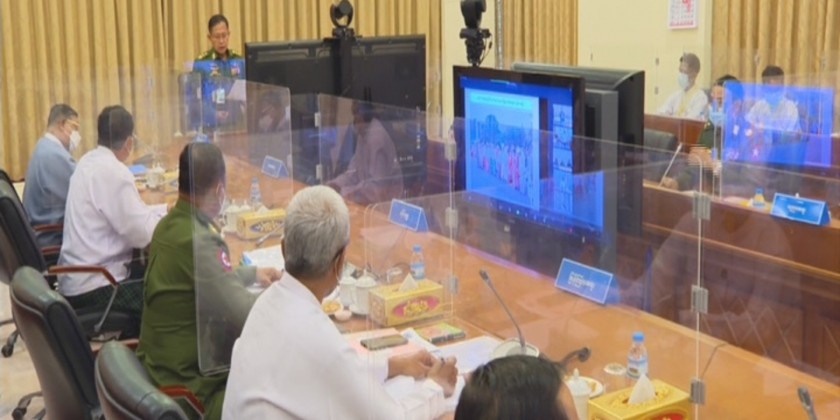 State Administration Council Vice-Chairman Deputy Prime Minister Vice-Senior General Soe Win in his capacity as the Chairman of the Central Committee on Organizing the 74th Anniversary of Independence Day addresses the first coordination meeting of the Central Committee at the office of the SAC Chairman in Nay Pyi Taw on 12 October 2021.