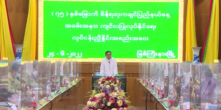 In the evening, the chief minister held a meeting with the state ministers, state advocate general, responsible persons from the Kachin State Construction Entrepreneurs Association on the construction works for the development of the state, matters encountered in the process of tender scrutinizing, job creation for the local companies, legal advices and the state minister reviewed the discussions. Responding to the discussions, the chief minister coordinated necessaries to carry out the tasks in line with the law and procedures.