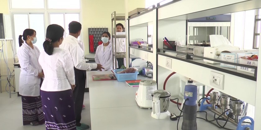 Deputy Minister Dr Tin Htut and officials then inspected operations of crop protection laboratory and food safety measures and the Deputy Minister called for upgrading the lab and the needs for improving lab expert resources.