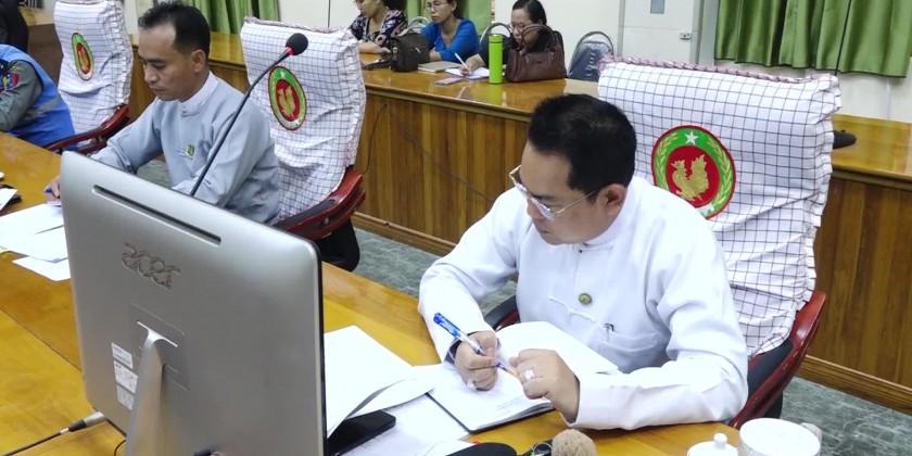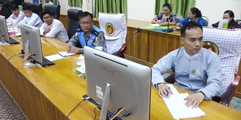 Members of State/District/Township Committees on Summoning People’s Military Service hold a work coordination meeting at the state government office on Tuesday along with the presence of Mon State Chief Minister U Aung Kyi Thein accompanying the state ministers.