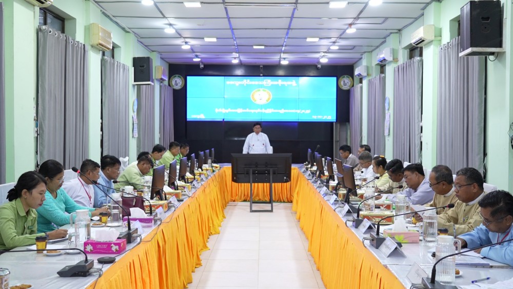 Following this, Region Security and Border Affairs Minister Col. Moe Min Thein delivered a speech, and the Deputy Director of the Regional Government Office read and clarified the decisions made in the Coordination Meeting on the Development of the Regional Crop Sector (13/2025).