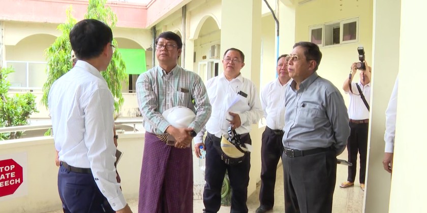 After the meeting, the Union Minister and officials inspected the Ministry of Energy buildings in Nay Pyi Taw that were damaged by the earthquake, specifically Office No. (6), Office No. (44), other special buildings, and the construction of temporary offices and took actions to provide necessary support where needed.