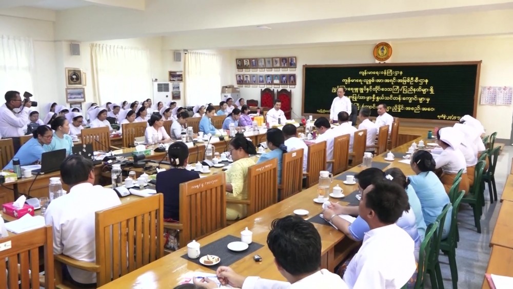 In his remark, the Union Minister said that from 53 Nursing and Midwife related training schools, the nurses and midwives have been turning out and the nursing and midwife education are being uplifting at the home and abroad. In the part of teaching, it’s important to turn out the nurses and midwives who are endowed with the qualification and ability in line with the country’s requirement for the healthcare as well as those who comply with the ethics and have the good attitude during the training period, teaching methods in practical teaching with international level curricula, teaching aids, requirements for Skill Labs, modern books that need to be kept in the library, Internet Access, records, difficulties encountered in the time and place of teaching, advantages and disadvantages, regarding the administration and management of the training school, matters to be complied by those who are engaged in public finance management, It’s needed to have an open and active discussion in order to share the difficulties with each other and achieve better results. The Government increased the assistance for the trainees and the relevant Regions and States Government are providing assistance constantly.
