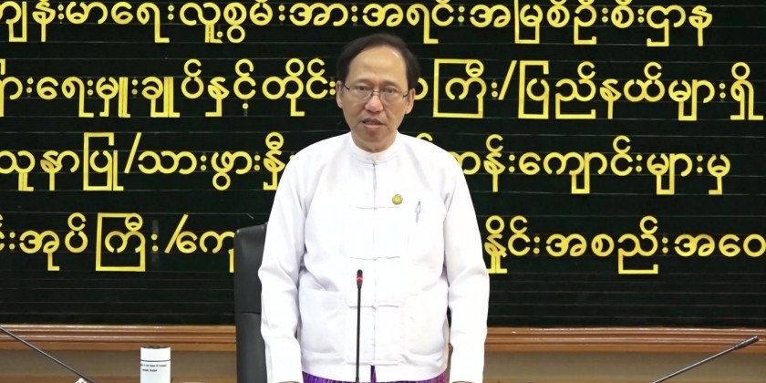 Union Minister for Health Prof. Dr. Thet Khaing Win gave an opening remark at the coordination meeting between the Director General of the Department of Human Resources for Health and the principals from the Nursing/Midwife related Training Schools in the Regions and States in the afternoon on 23rd of May through Semi Virtual Meeting.