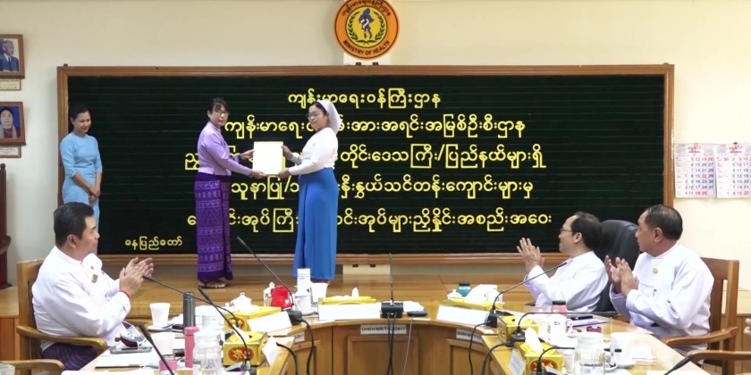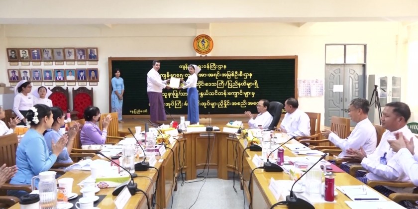 Next, the accreditation certificates were awarded to the nursing and midwife training schools by Myanmar Nurse and Midwife Council, prizes to the outstanding trainees at the trainings opened by the Civil Service Academy (Lower Myanmar), and certificate of honor who received the honorary awards and medal from the Regions and States during the tenure of the State Administration Council.