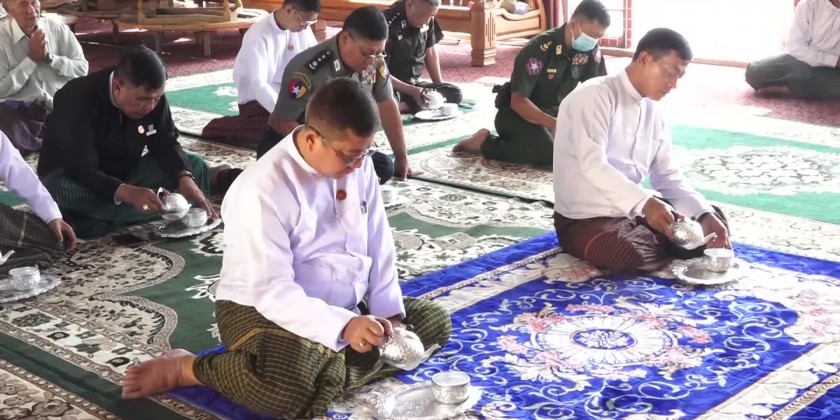 The congregation first observed five precepts administered by the presiding Sayadaw of Pitaka Taik Kyaung Sarthintaik, took the Paritta Suttas recited by the members of Sangha and offered the offertories to the Sangha. After taking the sermon delivered by the presiding Sayadaw of Shwe Taung monastery, the ceremony was concluded. The coordination meeting for the victory of the Mon State represented U-15 and U-18 football teams was held at the office of state government in the morning with the opening remark of the Chief Minister stressing the victory of the Mon State represented football teams, improvement of sports of the state and turning out the new generation athletes.