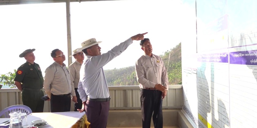 After that, the Chief Minister and party reviewed the progress of the Lay Mile Gwe–Naung Htali–Nyo Mee–Naung Pa Nar Bwar–Lin Kwin–Htee Ree (Livestock Zone) Shwe Nyaung road section. They examined heavy truck traffic conditions and instructed officials to improve sharp bends and inclines, as well as to prevent road erosion, collapse, and landslides during the monsoon season.