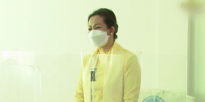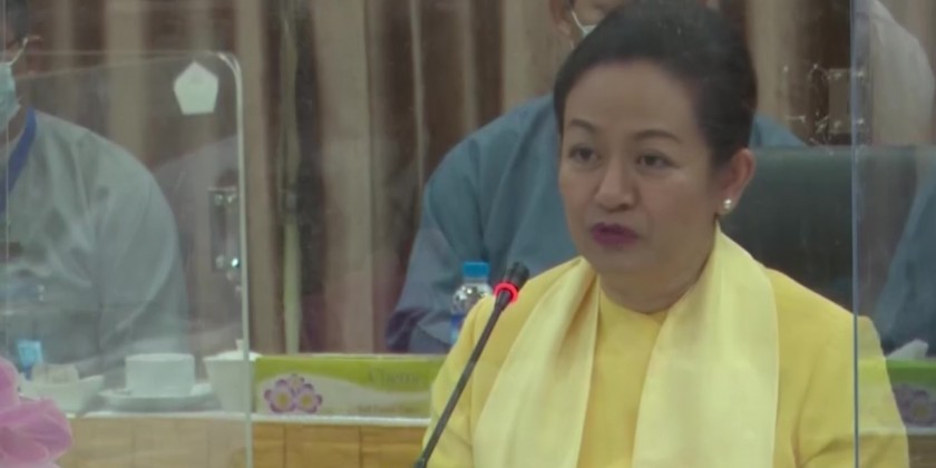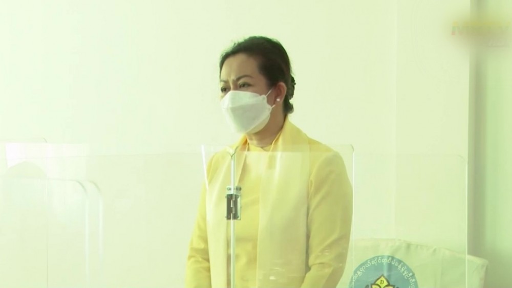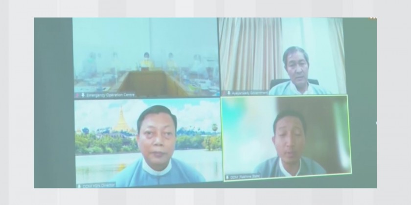 Vice Chairman of National Natural Disaster Management Committee, Union Minister for Social Wefare, Relief and Resettlement Dr Thet Thet Khine together with Deputy Minister U Aung Tun Khaing attended online coordination program on preparation for the depression over the Bay of Bengal at the Emergency Operation Center (EOC)on Monday.
