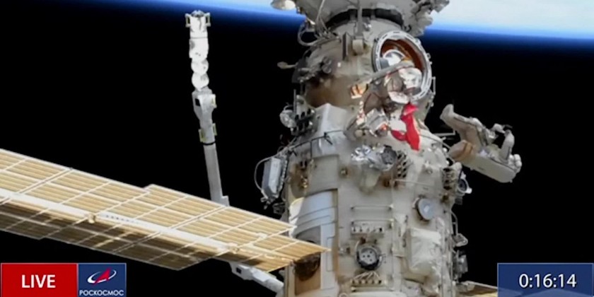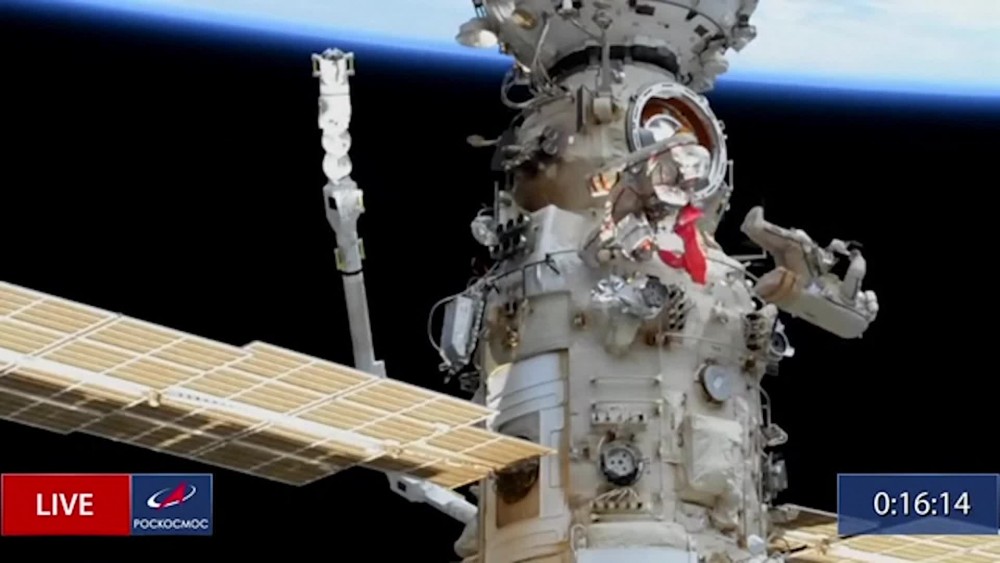 Russian cosmonauts at the International Space Station unfurled a replica of the Victory Banner during a spacewalk last Friday. The banner was unfolded on the external side of Russia's Nauka multi-purpose laboratory module by cosmonauts. The Victory Banner was the flag raised by the Soviet Red Army soldiers on the Reichstag building in Berlin on May 1, 1945. The original banner is on a display at the Central Armed Forces Museum in Moscow.