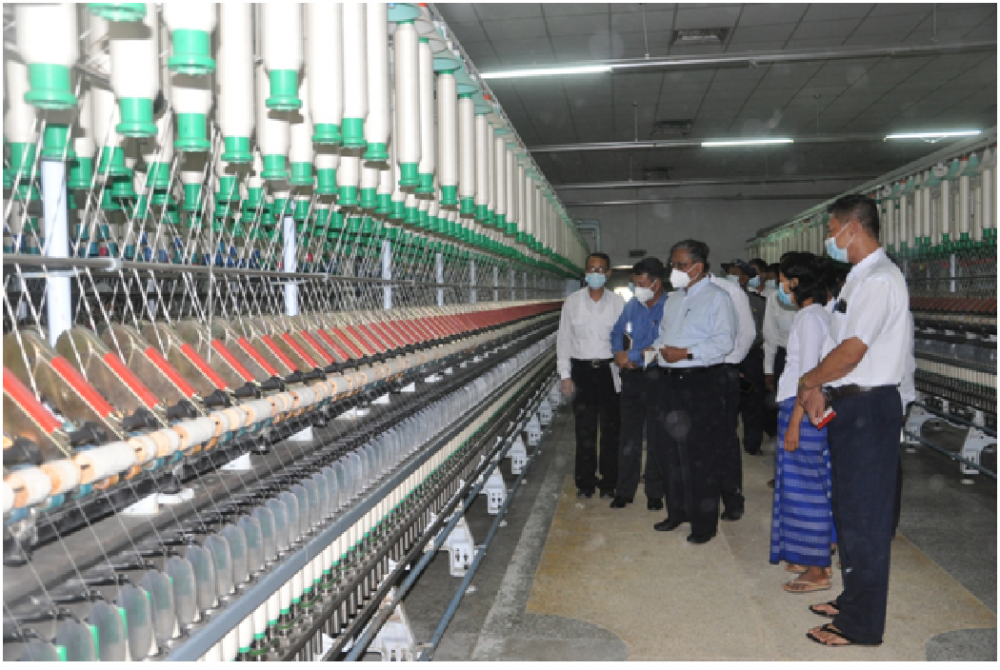 The Union Minister also inspected work processes in the factory. On the same day, the Union Minister visited the cotton mill in Yamethin Township and called for efforts to run the mill and to repair and maintain machines to manufacture quality products. He also looked around the mill.