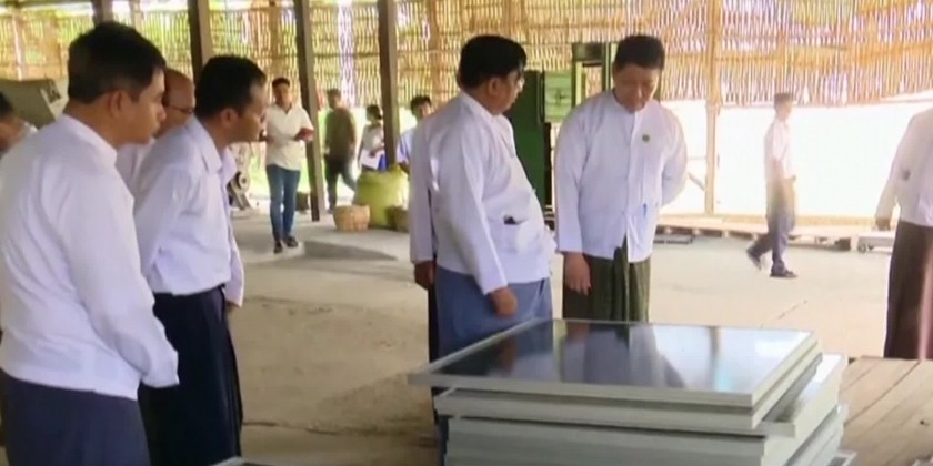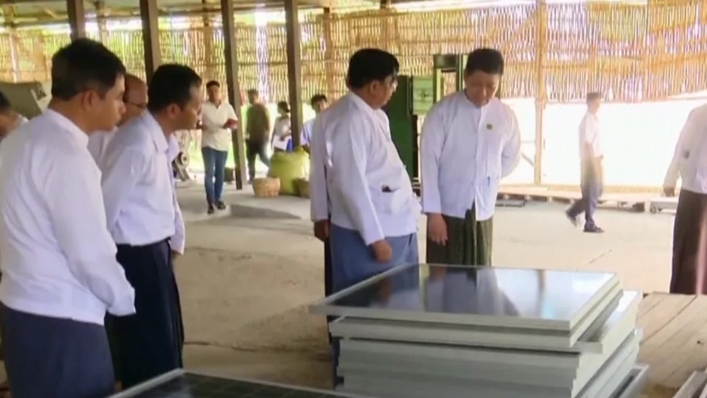Union Minister for Industry Dr. Charlie Than visited the Cotton Mill in Yamethin Township, Mandalay Region on 26 September to observe the installation of solar panels for the utilization of solar energy, along with the trial operation.
