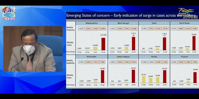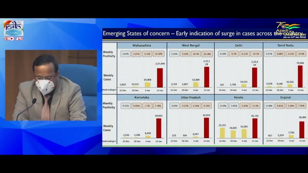 India's Ministry of Health stated Wednesday that the country is experiencing a "high surge" in COVID-19 cases. The country reported 185,000 new COVID-19 cases on Tuesday and the 7-day-average of cases has jumped from around 14,000 on January 1 to more than 130,000 on January 10.