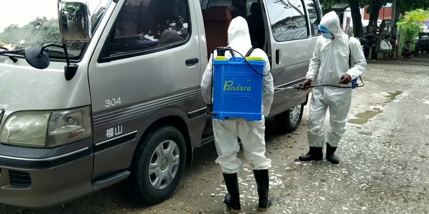 Administrator, Kyar Goung Bus Line, Ko Ko Naing said “With the guidelines of the military Battalion in Moe Meik, the disinfectant spraying has been conducted for 2 days. The passengers are also instructed to wear masks and use hand sanitizer. Although there have no confirmed cases in our township yet, we all need to be cautious.”