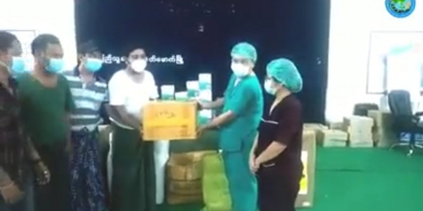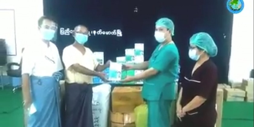 The donation includes oxygen tanks, surgical masks, gloves, apron, PPEs and other protective items worth about 497,000 kyats, according to the Information and Public Relations Department.