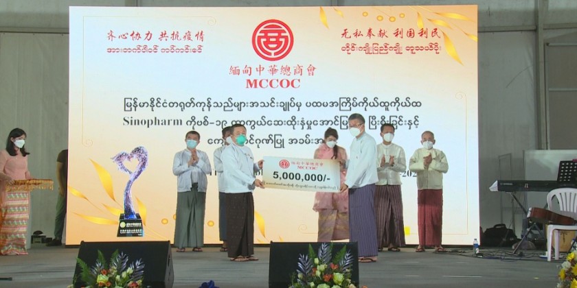 Under the approval of the Ministry of Health and guidance of the Yangon Region Coronavirus Disease 2019 (COVID-19) Control and Emergency Response Committee, Myanmar Chinese Chamber of Commerce (MCCOC) together with the support of the Chinese Embassy in Myanmar conducted a COVID-19 Vaccination Programme without taking any benefits.