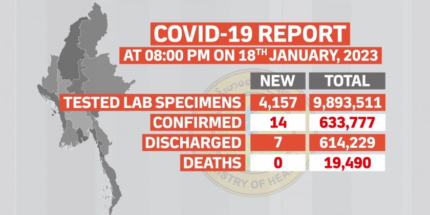 At the time of the report, there’s no patient who died due to the disease while 7 patients have recovered. Confirmed cases of COVID-19 in Myanmar have reached 633,777 with 19,490 deaths and 614,229 COVID-19 patients have been discharged from the hospitals.