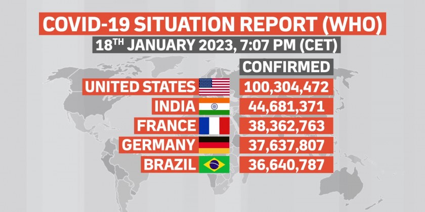 The World’s worst-hit countries are the United States of America, India, France, Germany, Brazil, Japan, the Republic of Korea, Italy, the United Kingdom and the Russian Federation, according to the World Health Organization. Globally, as of 7:07pm CET, 18 January 2023, there have been over 663 million confirmed cases of COVID-19, including over 6.7 million deaths.