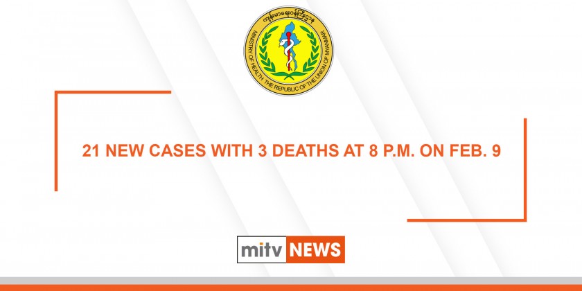 Ministry of Health and Sports reported 21 new COVID-19 cases at 8 p.m. on Tuesday after testing a total of 2,928 lab specimens within 24 hours, 3 new deaths and 462 patients discharged from the hospitals on 9th February. COVID-19 confirmed cases in Myanmar have reached 141,448 with 3,180 deaths and 128,437 patients discharged from the hospital until 8 p.m. on 9th February.