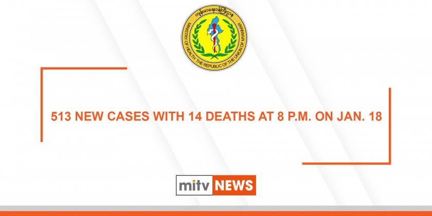 Ministry of Health and Sports reported 513 new COVID-19 cases at 8 p.m. on Monday after testing a total of 22,755 lab specimens within 24 hours, 14 new deaths and 510 patients discharged from the hospitals on 18th January. COVID-19 confirmed cases in Myanmar have reached 133,378 with 2,926 deaths and 116,610 patients discharged from the hospital until 8 p.m. on 18th January.