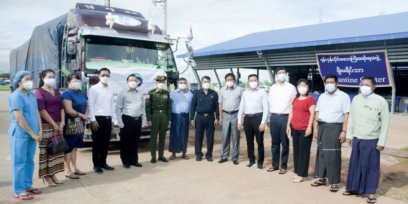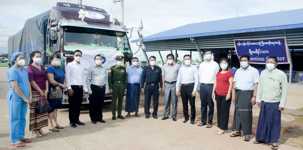 There, the Union Minister checked the arrival of a truck carrying the oxygen generator and other related materials that can fill 200 40-litre oxygen cylinders per day donated by U Tin Maung, Patron of Myanmar Arman Entrepreneurs Association and his wife, and the site chosen for construction of the oxygen plant. U Htoo Lwin, Chairman of the District Administration Body and in charge of centre, reported on the preparations for the COVID-19 positive patients and facilities.