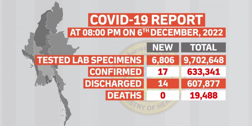 At the time of the report, there’s no patient who died due to the disease while 14 patients have recovered. Confirmed cases of COVID-19 in Myanmar have reached 633,341 with 19,488 deaths and 607,877 COVID-19 patients have been discharged from the hospitals.