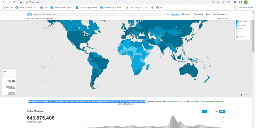 The World’s worst-hit countries are the United States of America, India, France, Germany, Brazil, the Republic of Korea, Japan, Italy, the United Kingdom and the Russian Federation, according to the World Health Organization. Globally, as of 4:46pm CET, 9 December 2022, there have been over 643 million confirmed cases of COVID-19, including over 6.63 million deaths.