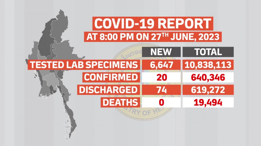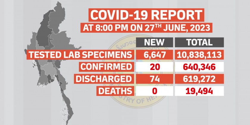 At the time of report, there is no patient who died due to the disease while 74 patients have recovered from the disease. Confirmed cases of COVID-19 in Myanmar reached 640,346 and the death toll stands at 19,494 and the number of recovered patients is 619,272.