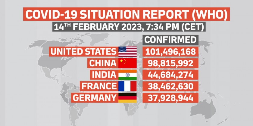 The World’s worst-hit countries are the United States of America, China, India, France, Germany, Brazil, Japan, the Republic of Korea, Italy and the United Kingdom, according to the World Health Organization. Globally, as of 7:34pm CET, 14 February 2023, there have been over 756 million confirmed cases of COVID-19, including over 6.84 million deaths.