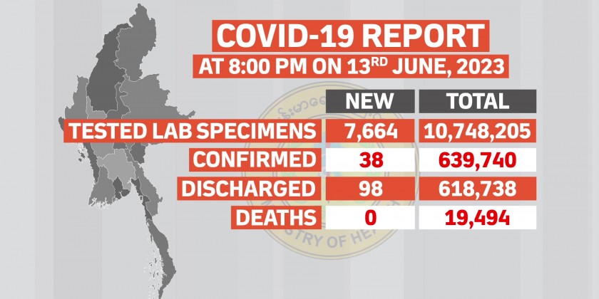 Confirmed cases of COVID-19 in Myanmar reached 639,740 and the death toll stands at 19,494 and the number of recovered patients is 618,738