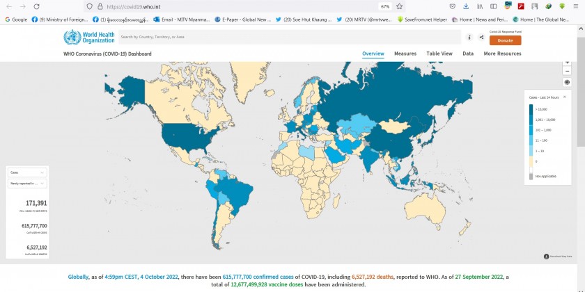The World’s worst-hit countries are the United States of America, India, Brazil, France, Germany, the Republic of Korea, the United Kingdom, Italy, Japan, Russian Federation, Turkiye and Spain according to the World Health Organization. Globally, as of 4:59 pm CEST, 4 October 2022, there have been over 615 million confirmed cases of COVID-19, including over 6.52 million deaths.