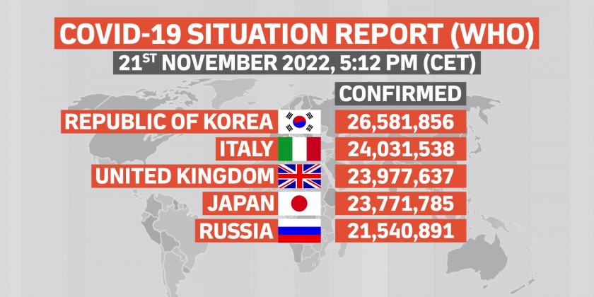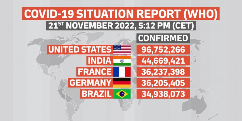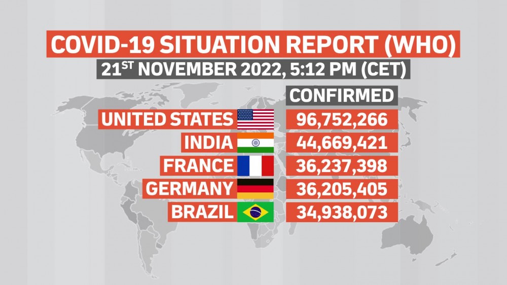 The World’s worst-hit countries are the United States of America, India, France, Germany, Brazil, the Republic of Korea, Italy, the United Kingdom, Japan and the Russian Federation, according to the World Health Organization. Globally, as of 5:12pm CET, 21 November 2022, there have been over 634 million confirmed cases of COVID-19, including over 6.59 million deaths.