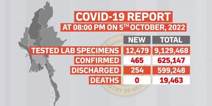 Confirmed cases of COVID-19 in Myanmar have reached 625,147 with 19,463 deaths and 599,248 COVID-19 patients have been discharged from the hospitals.