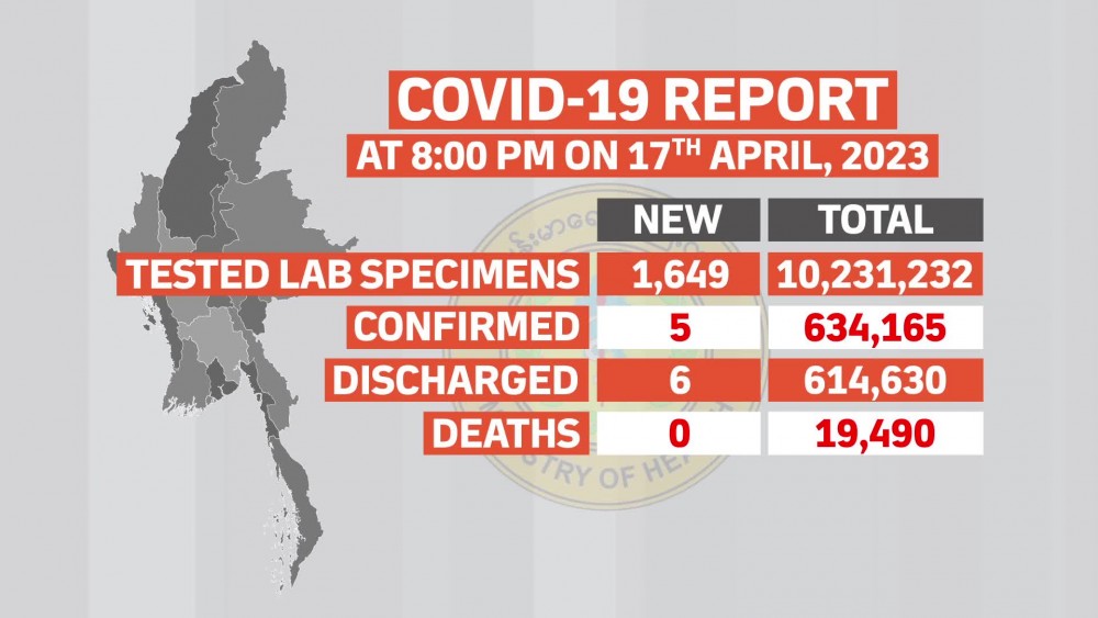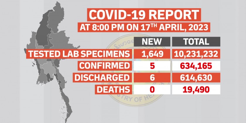 At the time of the report, there’s no patient who died due to the disease while 6 patients have recovered from the disease. Confirmed cases of COVID-19 in Myanmar reached 634,165 and the death toll stands at 19,490 and the number of recovered patients is 614,630.