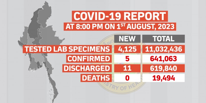 Confirmed cases of COVID-19 in Myanmar reached 641,063 and the death toll stands at 19,494 and the number of recovered patients is 619,840.